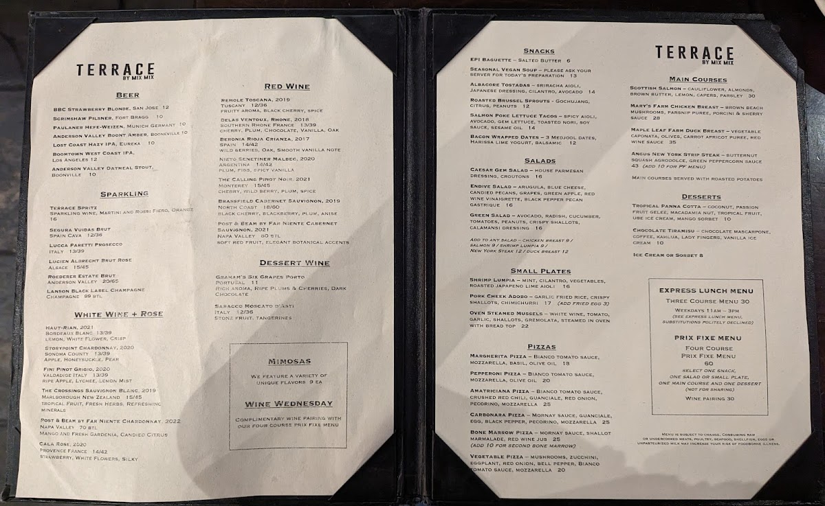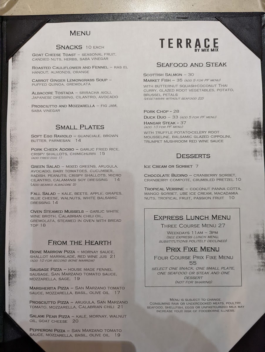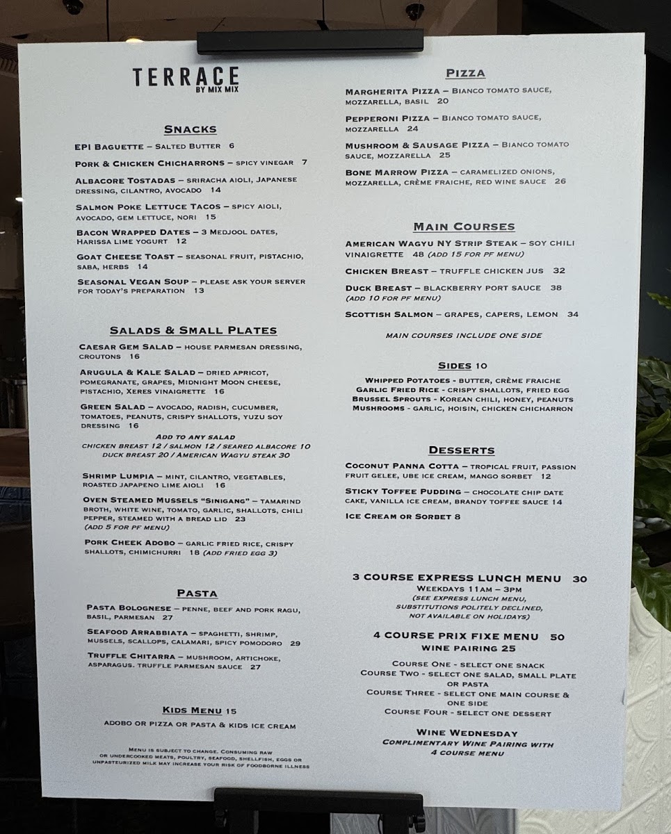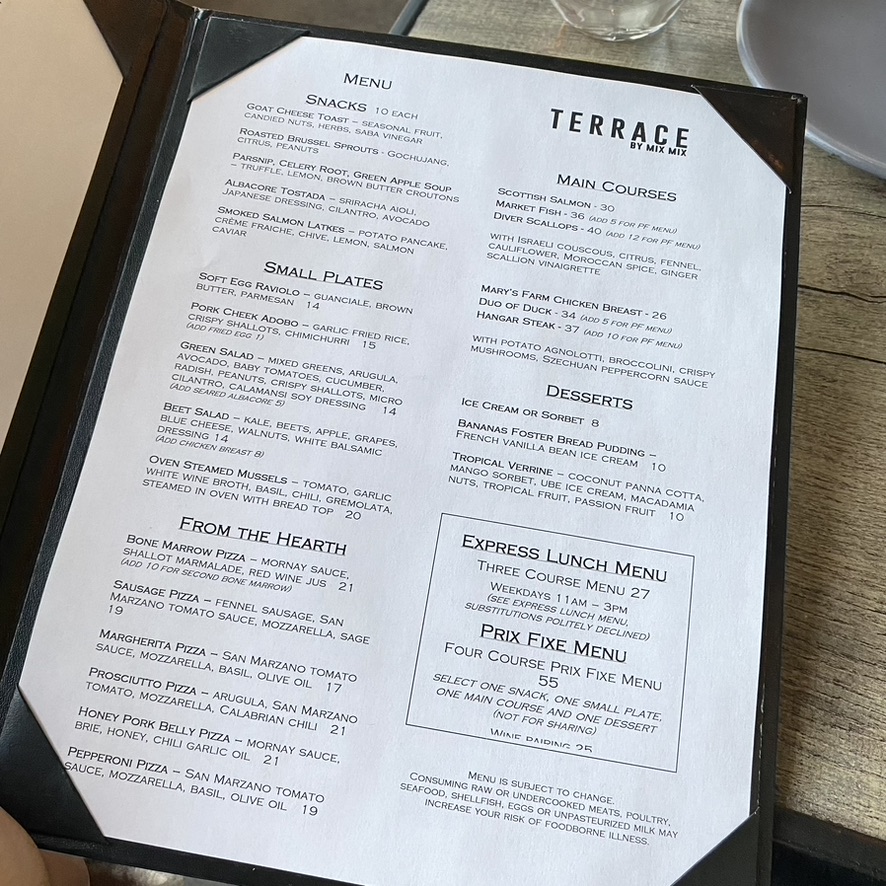 Introducing the Menu at Terrace by Mix Mix