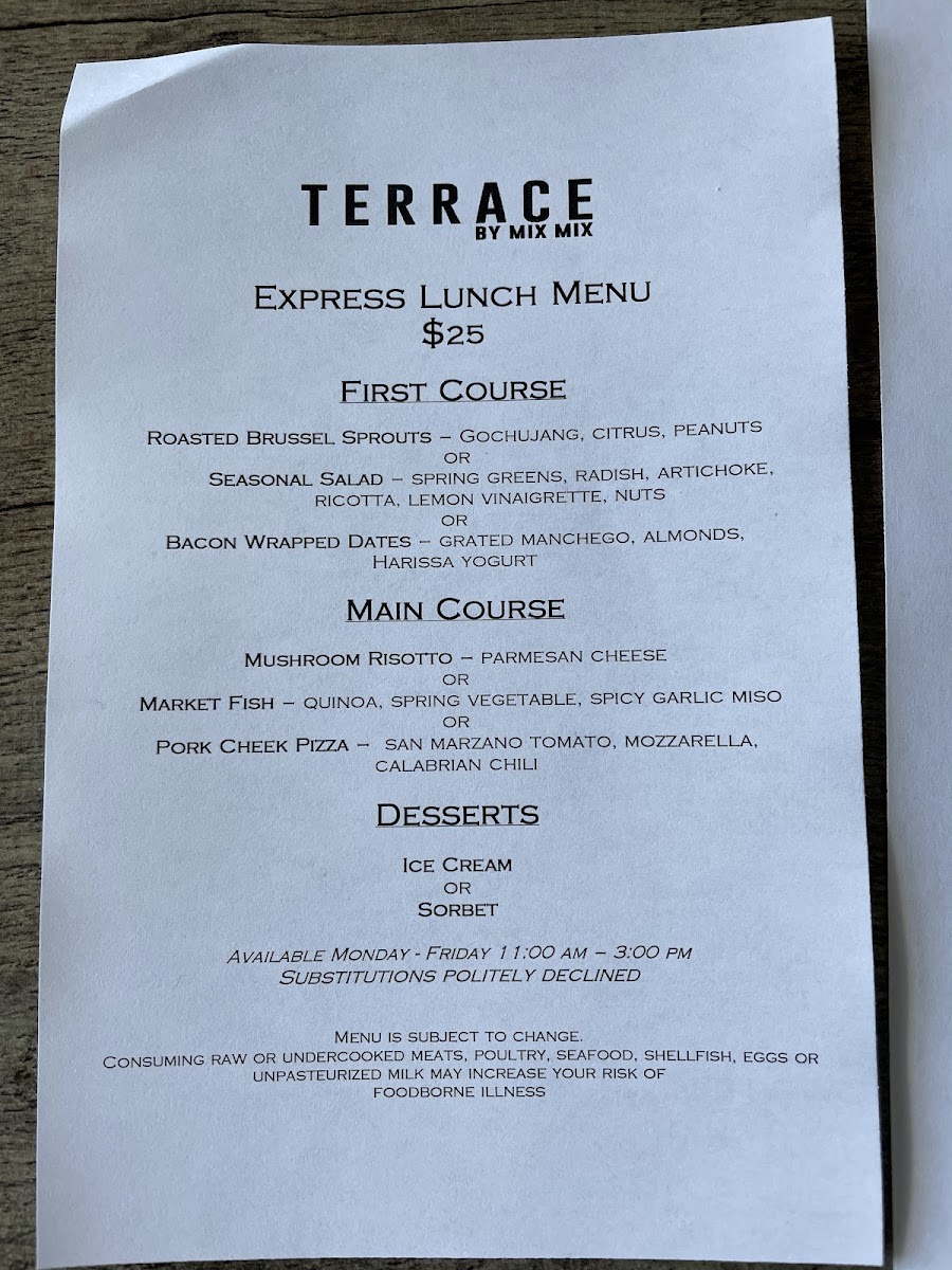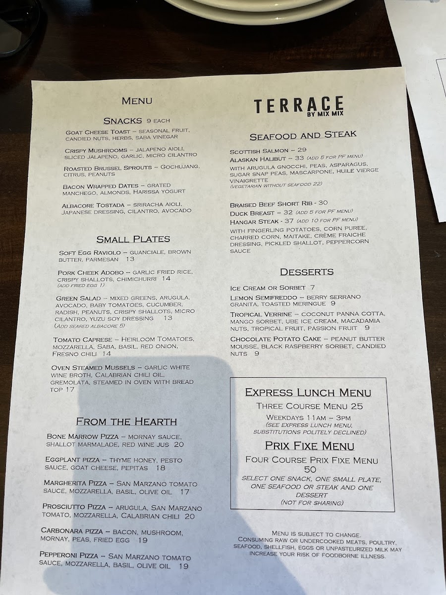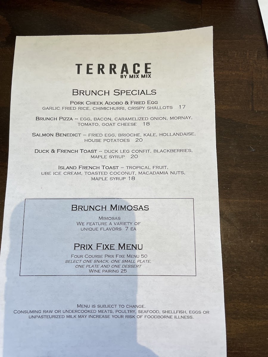 Introducing the Menu at Terrace by Mix Mix
